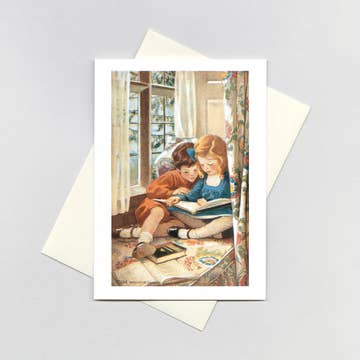 This card reminds us of the carefree child that still lives in each of us. Conjuring that child allows us to dunk donuts in coffee, play games and read Harry Potter. Many customers have told Betsie they kept this card for themselves. This caption alludes to a character in Tom Robbins' novel Still Life with Woodpecker who says "it's never too late to have a happy childhood." * A2 (4.25 x 5.5 inches) * Blank inside. . .don't hold back! * Made in the USA...by nice people in Boise, Idaho. * Compostable clear bag...food for microorganisms!