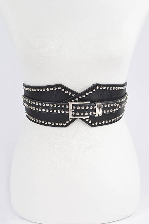 * Studded elastic zipper belt * Polyurethane/ elastic/ iron. * Approx. Width:5" Length:30"