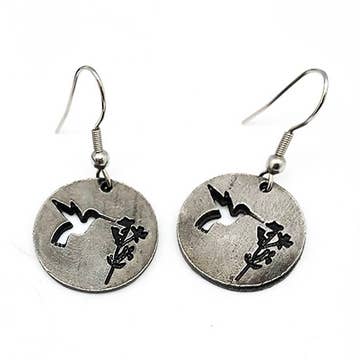 Pewter Earrings - Hummingbird and Flower