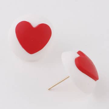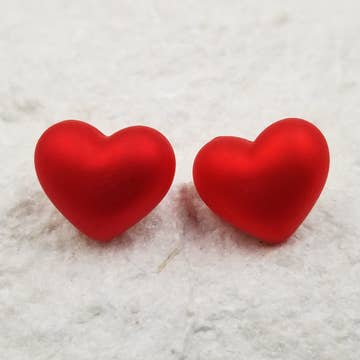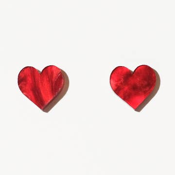 Cherry red stud earrings in a fantastic retro shaped leaf. Each is in a gorgeous & rich moonglow finish. Studs measure about 12x20mm or just about 3/4" in length. So they're a great sized statement earring. Most all earrings are made with vintage lucite parts that were made in Rhode Island in the 1960's - early 80's by Best Plastics. We hand-set them with surgical steel earring posts and they have sturdy surgical steel/acrylic backings on them as well. Light-weight & fun to wear.