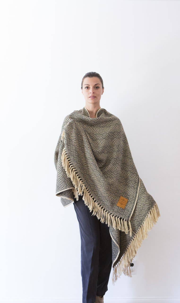 Loom-woven by a cooperative of female artisans of Colombia. The Guatapé Poncho is ethically constructed using locally grown organic cotton and plant dyes. This poncho is made to return to the Earth at the end of its lifecycle by way of composting. The brown color is realized using the bark of local oak trees. *wash cold water *hang to dry *size chart