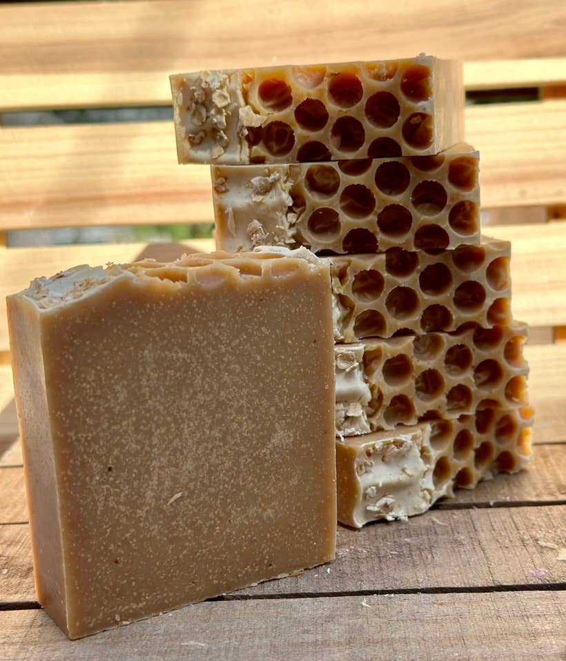 Made in United States Formulation Type: Solid / Bar Ingredient Preferences: Fragrance-Free, Hypoallergenic, Non-GMO, Paraben-Free, Phthalate-Free, and Sulfate-Free Occasion: Mother's Day Size: Standard Beauty Concerns: Anti-Acne, Anti-Aging, Blemish Reducing, Brightening, Exfoliating, Hydrating, PH Balancing, Pore Reducing, Sensitive Skin, and Skin Firming Product Language: English Ingredients: Ingredients: Saponified 100% Extra Virgin Olive Oil, Coconut Oil, Castor Oil, Avocado Oil, Shea Butter, Kaolin Clay, Raw Honey, Oatmeal & Fresh Goats milk. Weight: 140.61 g (4.96 oz) Dimensions: 8.9 x 2.5 x 7.6 cm (3.5 x 1 x 3 in) Product Materials: Organic and Plastic-free Packaging: Plastic-free, Recyclable, and Reduced Production: Cruelty-free, Ethically sourced, Fair trade, and Low-impact transport