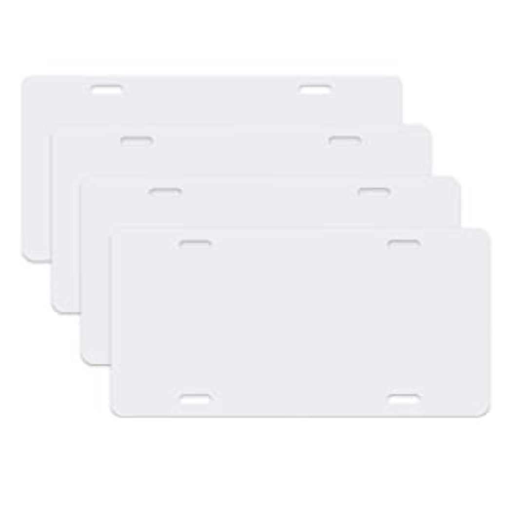 Sublimation Blank License Plates Size: 6"x12" 4 holes Material: Aluminum Details: The license plate blanks are coated with a polyester coating on 1 side for printing. Sublimate on the white side only! 1 plate in your order **These will come blank. Just add your own design. **REMOVE ANY PLASTIC FILM BEFORE SUBBING** 400 degrees for 60 seconds is the standard. ***PLEASE PRESS ACCORDING TO YOUR HEAT PRESS!!! Adjust your time & temp accordingly No returns No exchanges No cancelations Ready to SHIP!