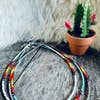 This western inspired seed bead chokers has vibrant colors sure to keep any outfit on the punchy side! The light sky blue color is a must for stacking and layering for any cowgirl! Wear solo or layer, these little chokers are super cute! ~Handmade by me ~14" long with 2" chain extender ~2mm seed beads ~Light sky blue with fire colors ~Wear solo or layer and stack with other favorites