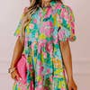 Puff Sleeve Collar Buttoned Babydoll Dress
