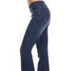 Regular size dark wash comfortable pull on denim flare jeans