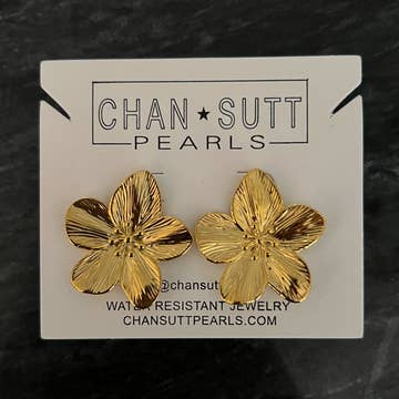 Puakenikeni means ten-cent flower. Lei makers during the "Steamer Days" (late 1800s to mid 1900s) strung Puakenikeni and sold them for a dime. The pua (flowers) are best harvested in the early morning. The first day it is white, the second day it is yellow and the third it is orange. • Our Puakenikeni Stud Earrings are approximately 0.4 inch or 10 mm long •Stainless Steel and Hypoallergenic •A portion of all sales of these earrings go to organizations that protect native Hawaiian plants and animals