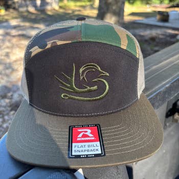 Hand crafted in the State of Florida using only the finest materials, and equipment. A modern seven-panel trucker, the Richardson 168P comes in both licensed camo and our proprietary duck camo prints. Featuring a flat bill and Hi Pro shape, this cap features a seamless front panel that accommodates a wide variety of decoration types. KEY FEATURES & BENEFITS: * Our soft, signature trucker mesh offers the ultimate in airflow * Adjustable snapback ensures an ideal fit for all sizes * A seamless front panel offers decoration versatility Product Specifications Style: 7 Panel Profile: Hi Pro Bill: Flat Sweatband: Standard Fabric: Cotton-Polyester Twill/Trucker Mesh Composition: Front: 60% Cotton/40% Polyester Back: 100% Polyester Closure: Snapback Fit: Adjustable Size: OSFM