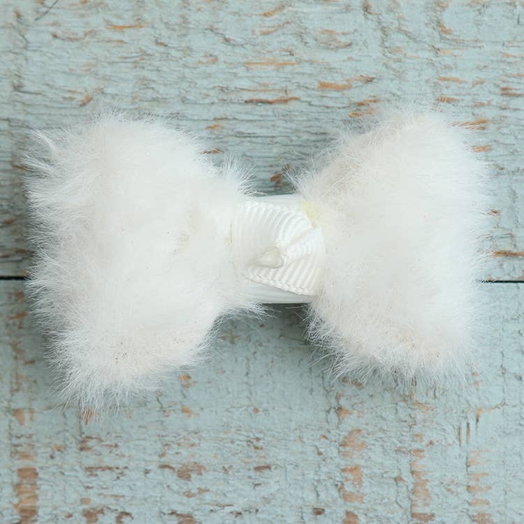 A simple modern hand-tied velvet bow. Measures approximately 4.5". Due to the hand crafted nature of each product there may be slight variations in sizing and color. Bows and clips contain small parts that could be hazardous to small children. Please supervise children during use. Made from CPSC compliant and exempt materials.