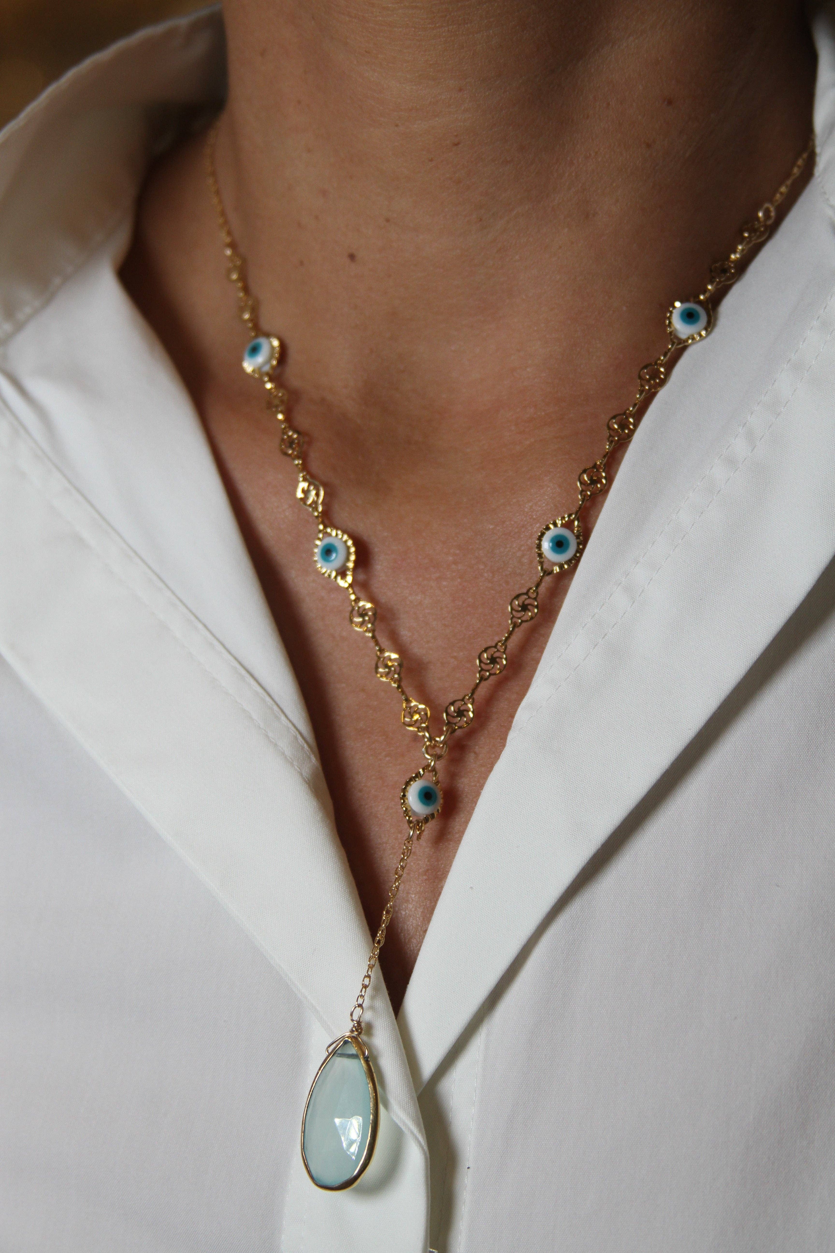 Wholesale Turquoise & Labradorite With Chalcedony Teardrop Necklace