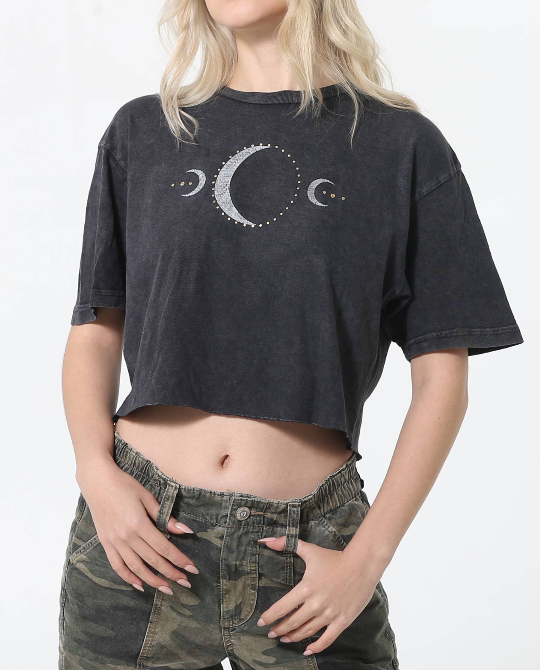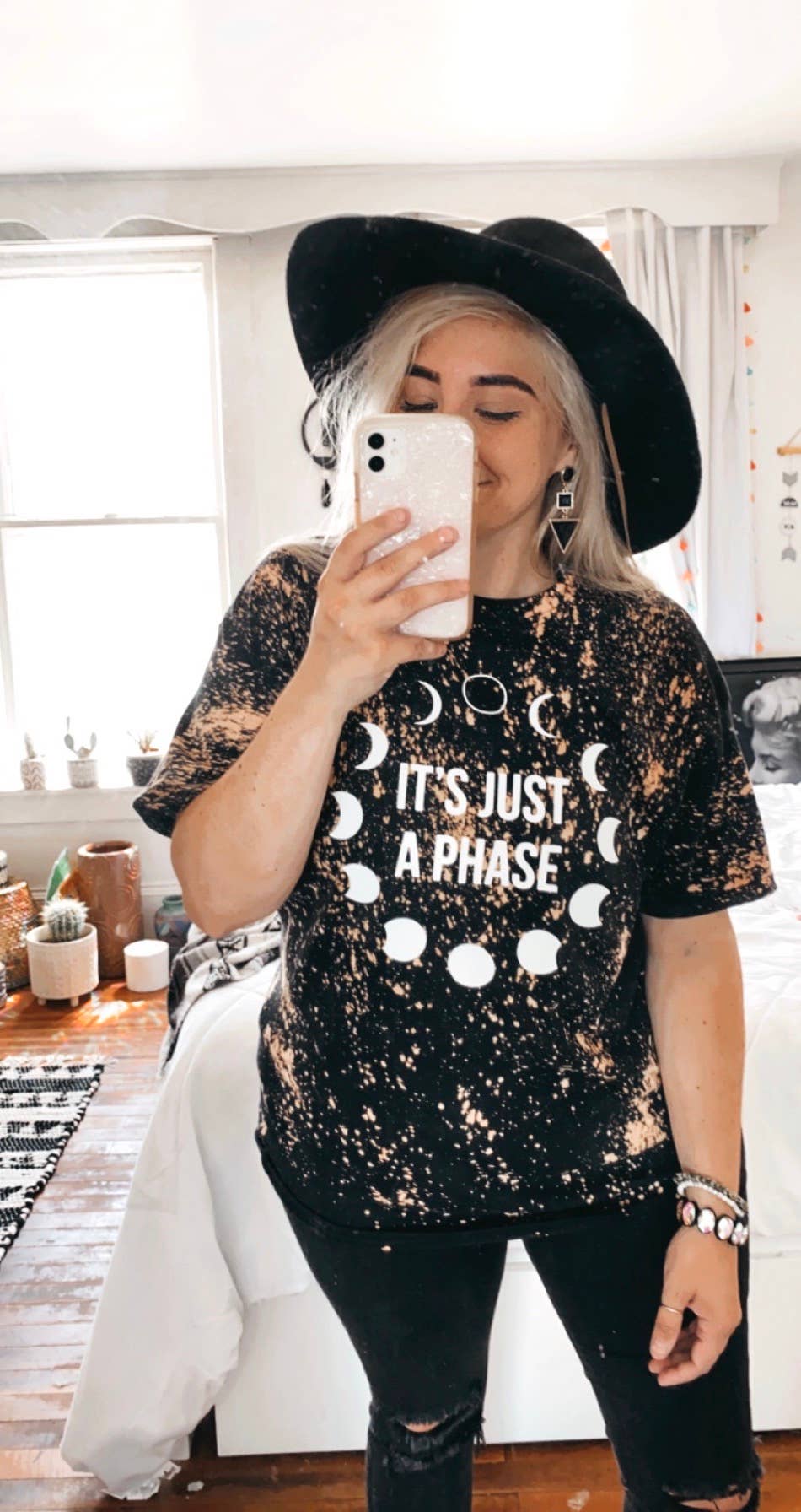 From new to full and back again, just remember that nothing lasts forever -- at most it's just a phase! Our "It's Just a Phase" space t-shirt is perfect to remind everyone that unlike the moon's phases, your science humor isn't temporary. Represent your love for outer space and astronomy with our moon phases shirt. Color: Black Shirt Info: Pre-shrunk poly/cotton/rayon blend Scoop neck Relaxed fit Our stylish, light weight dolman tees are made with a poly/cotton/rayon blend. They feature a scoop neck, side seam construction, and a curved bottom hem. We print our designs using eco-friendly water-based inks. All of our items are designed and hand-printed to order in our southern California studio. Due to the nature of the blended fabric used to create these shirts prints will have a more faded vintage look as depicted in product photos.