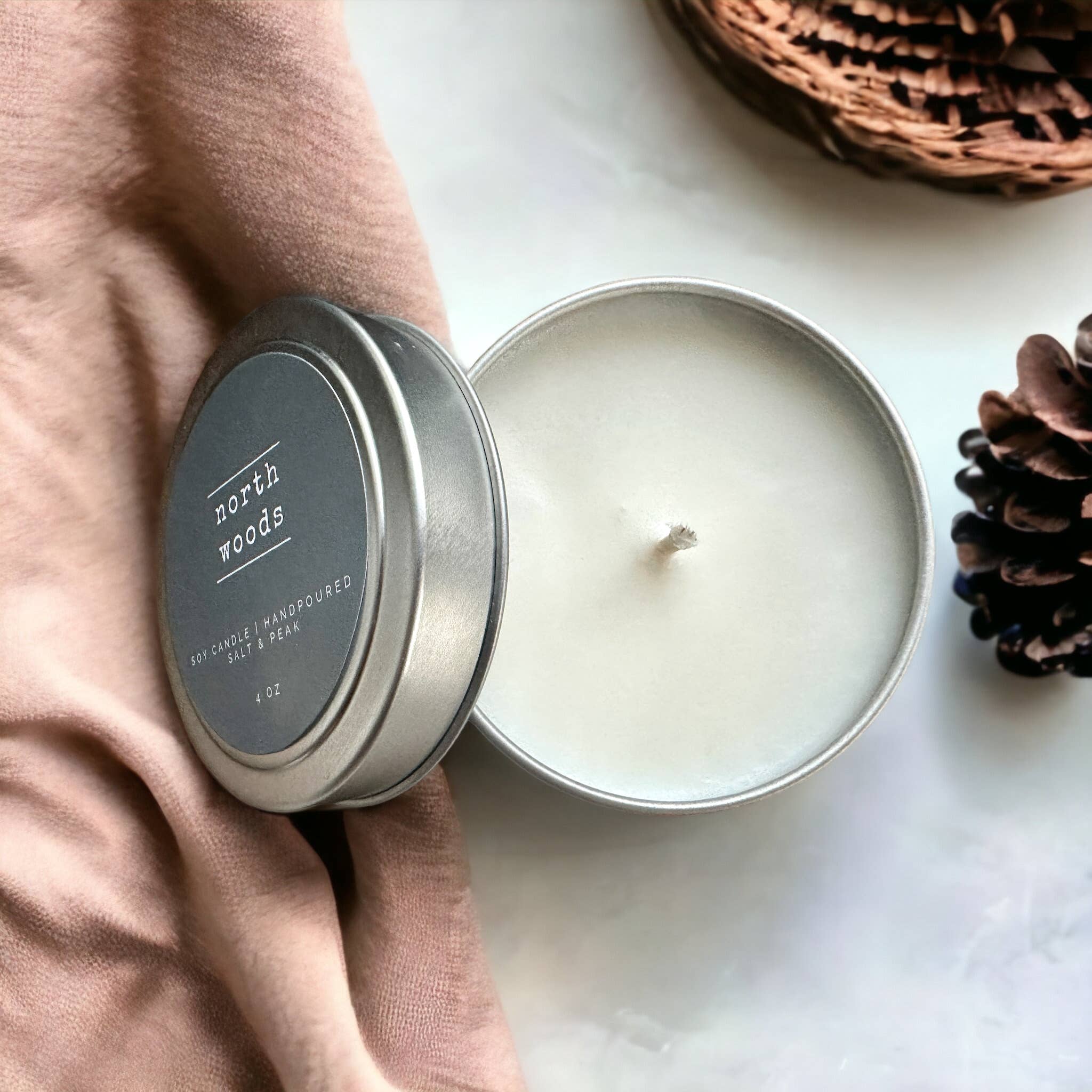 Raised By Wolves, Cedar + Balsam Fir. 100% soy wax candle. 4oz Travel Tin. 20+hr burn Time.