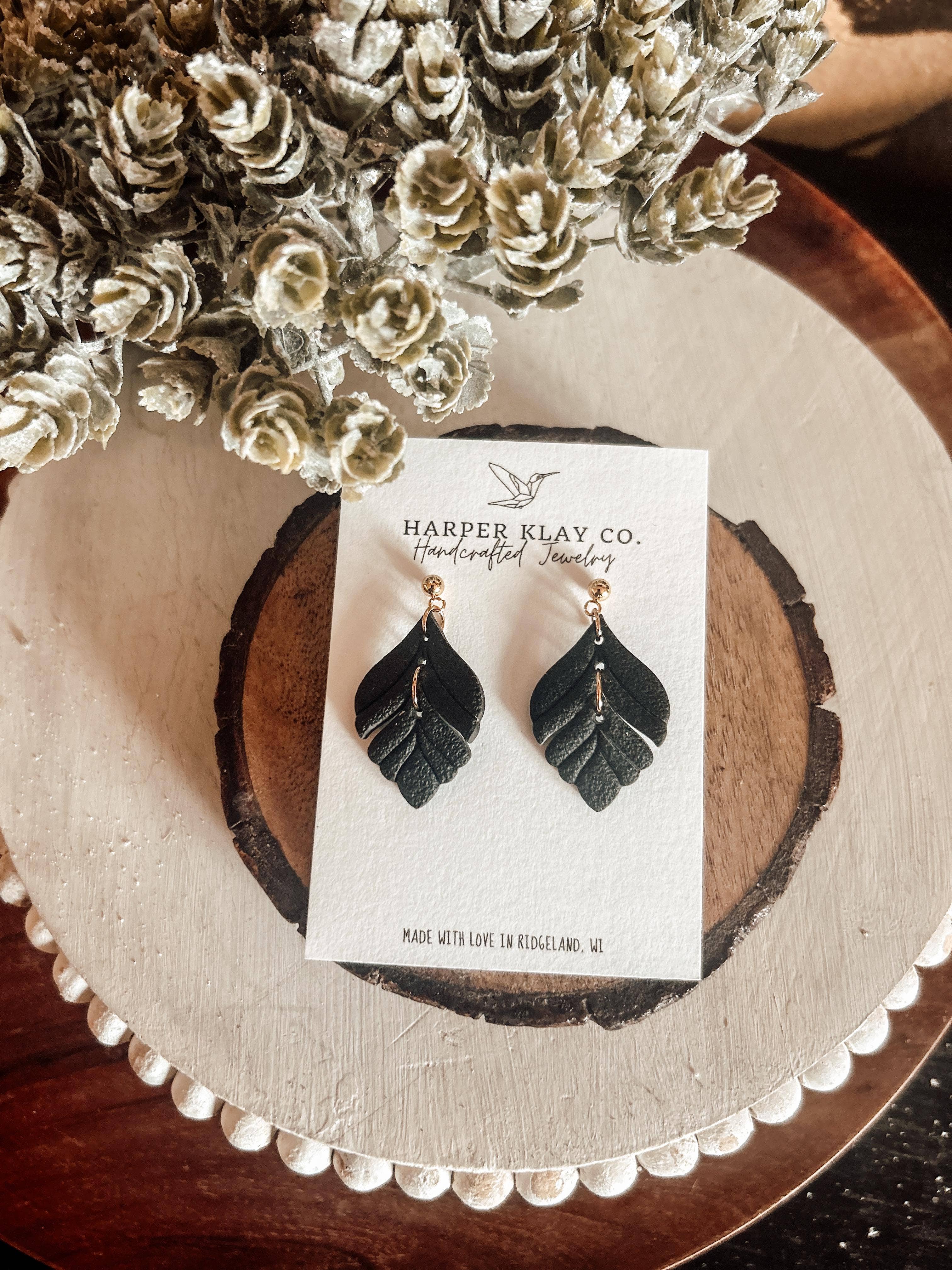 Black Leather Feather Earrings (4 sizes)