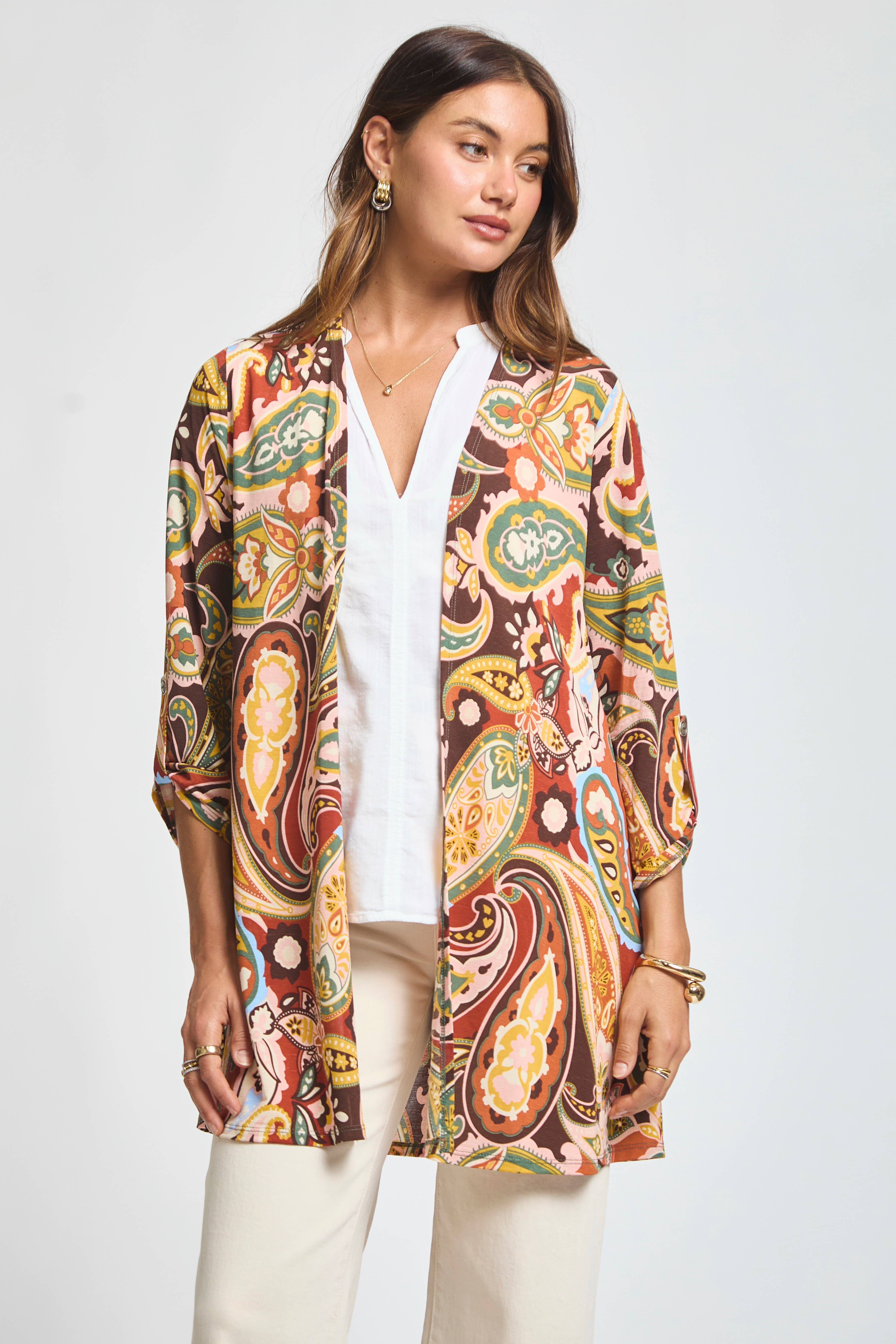This beautiful hacci wrap top is perfect for transitional days! We love the easy fit on this top with long sleeves and detailed front. Stretchy, knit. Available in Plus Size: TRV-WATERFALLP Imported
