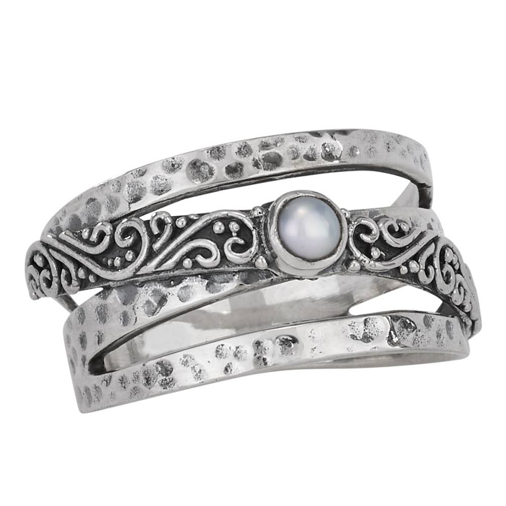 AR-6287-MOP Sterling Silver Wave Pattern Ring With Mother Of Pearl Inlay In Balinese Design