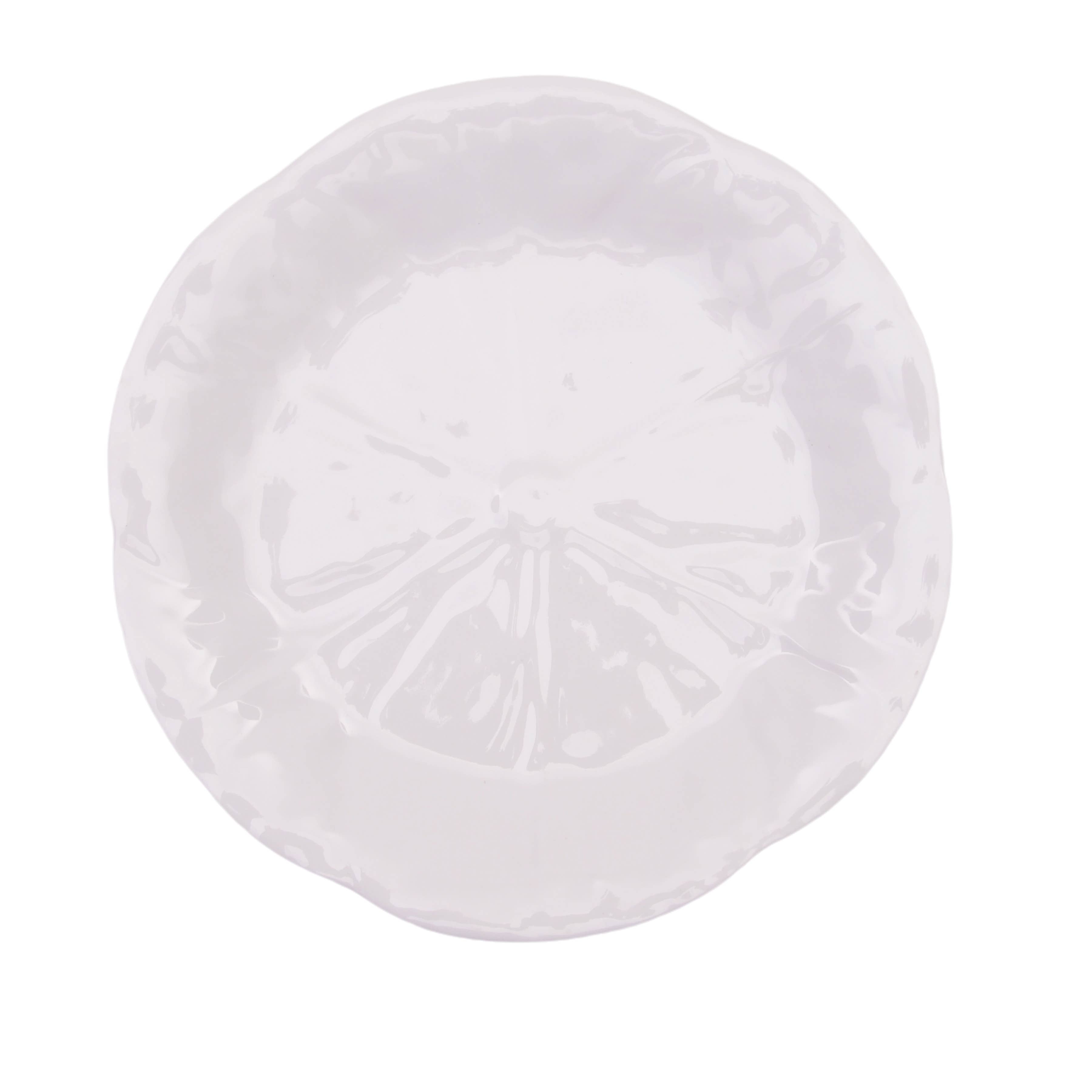 Our Pearl salad plate features a delicately hammered texture and crisp white design. Whether ?you're enjoying burrata and tomatoes or prosciutto wrapped melon, this salad plate from our Pearl series is great for year round dining. Made of 100% melamine, this BPA free dinnerware is virtually unbreakable and is easily mistaken for fine china.