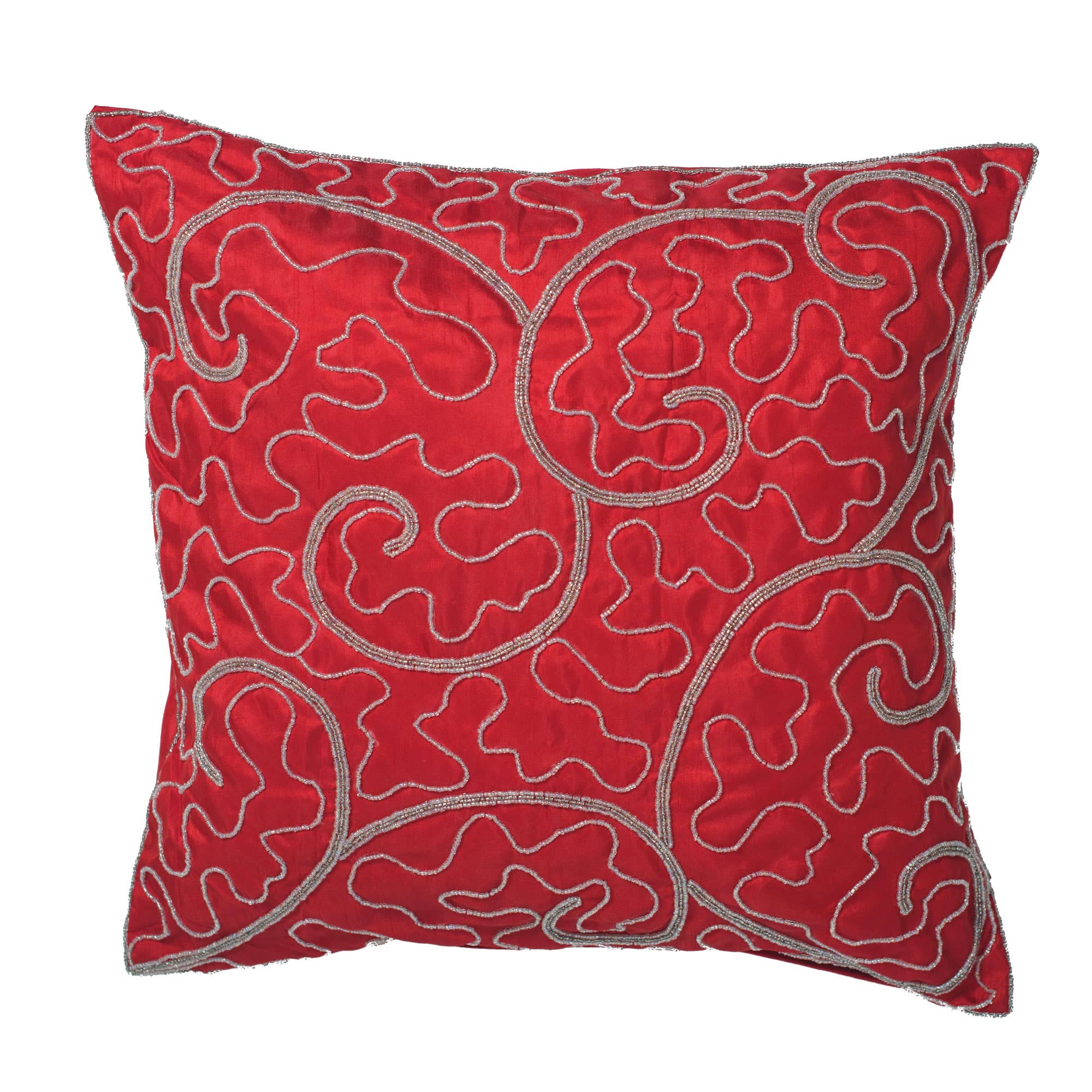 - Polyfill insert included - Size: 19"x19" - Fabric: 49% Polyester/43% Acrylic/8% Viscose - Back is solid color wine velvet; Knife edge seams; Hidden zipper closure - Dry Clean Recommended