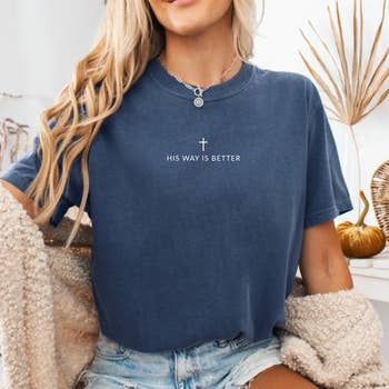 "I Just Pray A Lot" This Ice Blue Comfort Color t-shirt is so comfy! Featuring a crew neck, short sleeve tee. This will be a shirt that you will love from the moment you put it on. We design our jewelry and apparel to bless others in a personal way, and in return we are being a blessing to those in need by donating a portion of the proceeds not only to orphanages in Haiti and India, but also to local organizations who strive to bring hope to their communities. Specifications: Soft washed garment dyed fabric. Double-needle stitching on neck, sleeves and bottom hem. Twill taped neck and shoulders. Double needle armhole, sleeve and bottom hem. Short sleeve. Crew neck. Printed at our facilities in Georgia, USA. Fit: unisex runs true to size. See attached sizing guide.