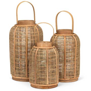 Large Natural Hanging Lantern - Rattan & Glass