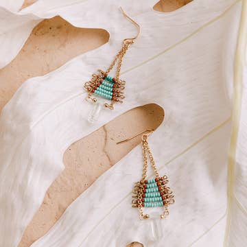 Diamond-Shaped Earring with Leather Accents