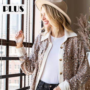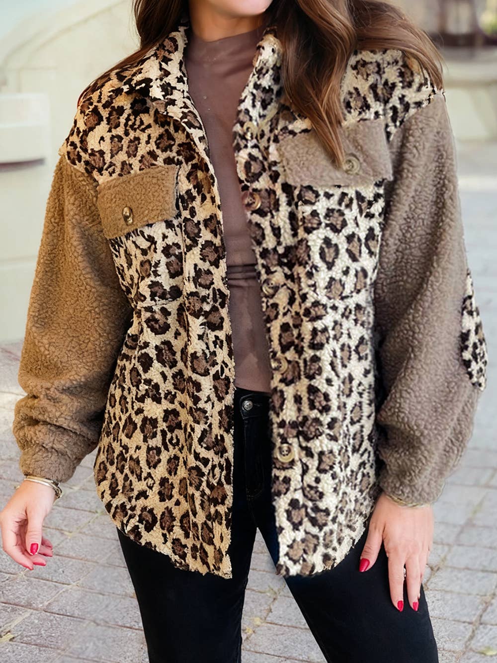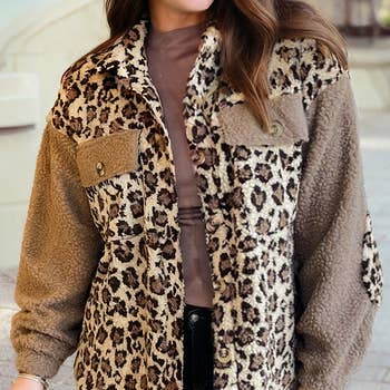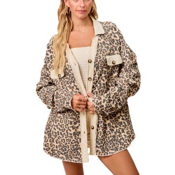 95% POLYESTER 5% SPANDEX LONG PUFF SLEEVE HOOD AZTEC AND ANIMAL LEOPARD PRINT CONTRAST BUTTON DOWN SHACKET WITH SIDE POCKET DETAIL MODEL SIZE: HEIGHT 5'8", BUST 32", WAIST 24", HIPS 36" WEARING SIZE: SMALL *The garment color may differ slightly upon arrival due to being taken with professional lighting also depending on what device you maybe using to shop*