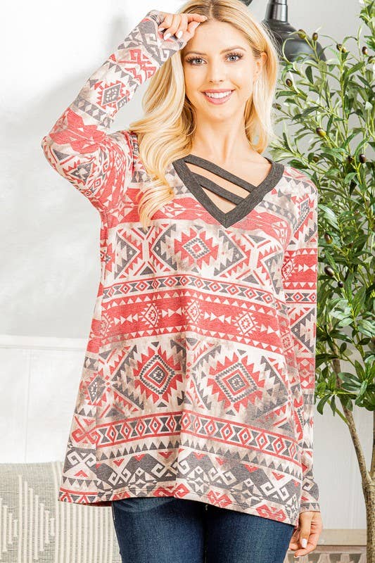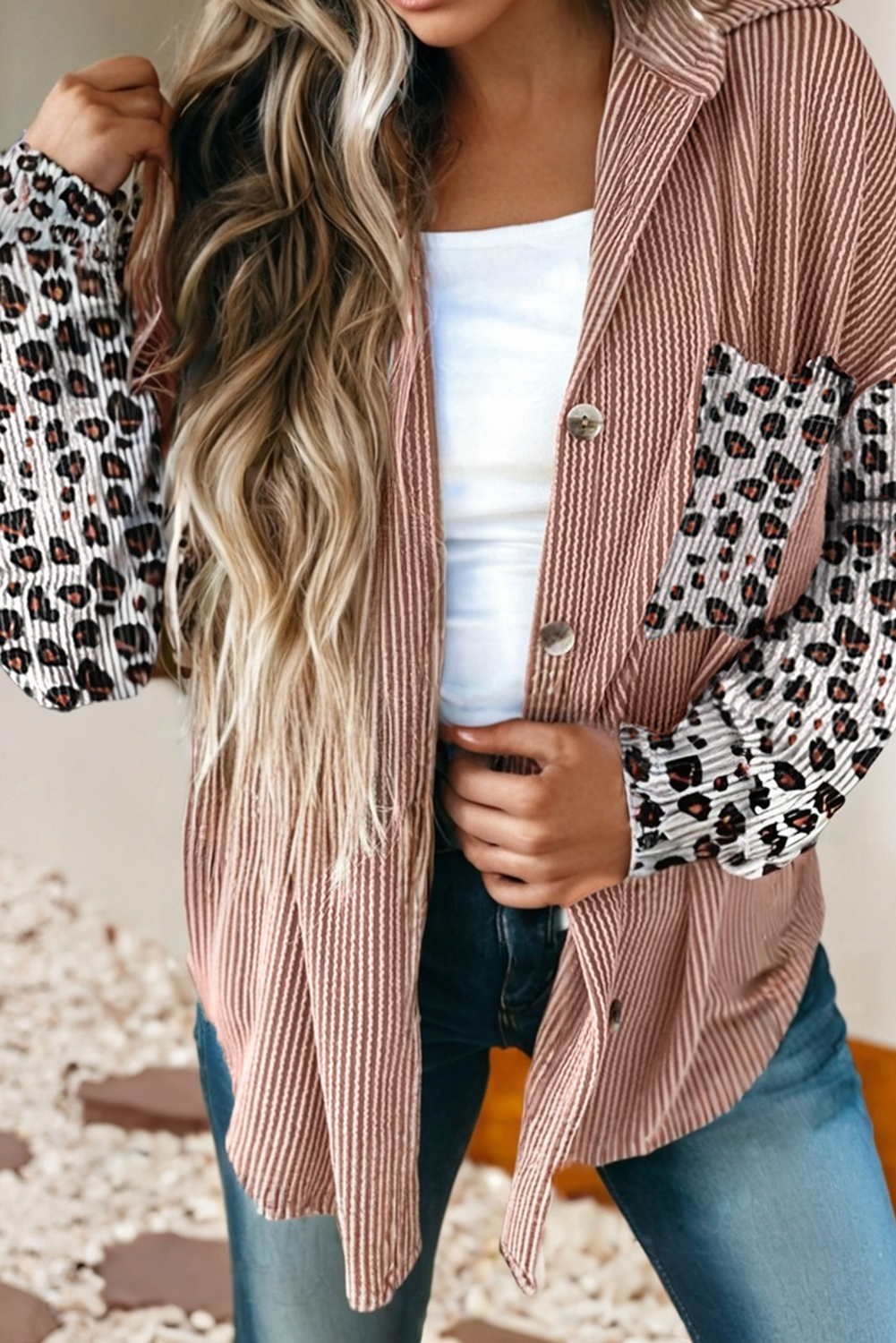 EJ6720-15 AZTEC AND ANIMAL LEOPARD BUTTON DOWN SHACKET