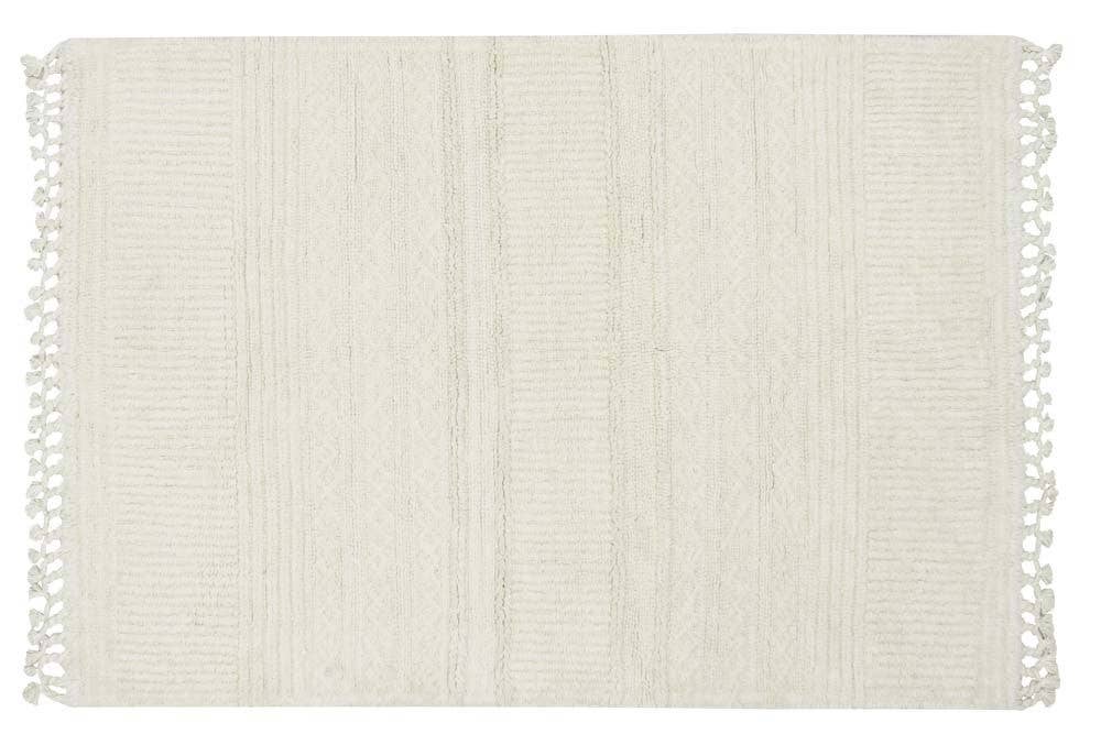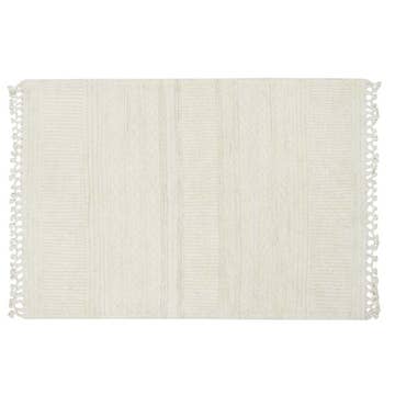 Perfect for the living room or bedroom, this creamy, off-white jute area rug is blended with soft fibers that are gentle on bare feet. A cozy, grounded texture and woven two-toned construction add natural brightness to your indoor spaces, which is especially invigorating during early mornings and dark winter months. Like most neutral rugs, this versatile piece pairs easily with a variety of décor schemes, from minimalist and modern to rustic farmhouse chic. Adding a jute area rug to your room provides durable floor protection, ample wear resistance, and natural style to your everyday life. * Enjoy the hand-made look and feel of this rug, which was woven on a hand loom by skilled weavers using traditional techniques. * Jute fibers have anti-static, insulating, and moisture-regulating properties to make your room naturally more comfortable. * Post-consumer PET is made from recycled soda bottles. * This rug is GoodWeave-certified, which means you're not only making the world more beautiful by buying an artisanal product -- you're making the world better by helping to end child labor and supporting fair working conditions. * Rug pad recommended * Slight color variations may occur due to the unique qualities of natural fibers and recycled materials