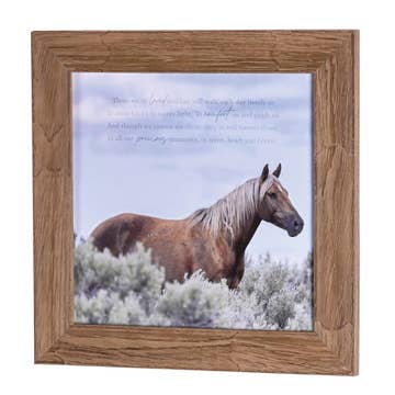 Capture the timeless elegance and grace of equine beauty with this exquisite black and white art print featuring a stunning black horse. The intricate details of the horse's sleek black coat and powerful physique are masterfully depicted against a frosty white background, creating a striking contrast that makes the horse truly stand out. Hang it in in your home office for an inspiring and powerful atmosphere. • Printed with high resolution giclee inks • Fine art canvas mounted on wood • Solid hardwood frame in shown stain colors • Sustainable American alder wood • Made in the USA in our Utah studio • Mini 6x10" x 1.25" deep w/ 1/4 thick frame • 12x18" x 1.5" deep w/ 3/4" thick frame • 18x24" x 1.5" deep w/ 3/4" thick frame • 20x30" x 1.5" deep w/ 3/4" thick frame • 24x36" x 1.5" deep w/ 3/4" thick frame • Signs may have +/-1" variations • Signs can stand on a shelf or table or can hang on the wall from the back edge of the frame • Farmhouse style frames have rustic imperfections that make them unique