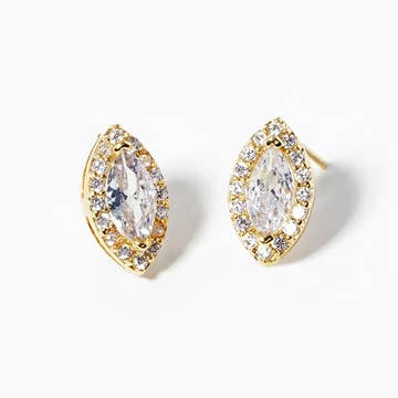 18K Gold Non-Tarnish Oval CZ Stud 18K Gold Plating Stainless Steel Measurement (L x W inch): 1.09 x 0.96 - Lead-free, Nickel-safe - Hypoallergenic - Water Resistant