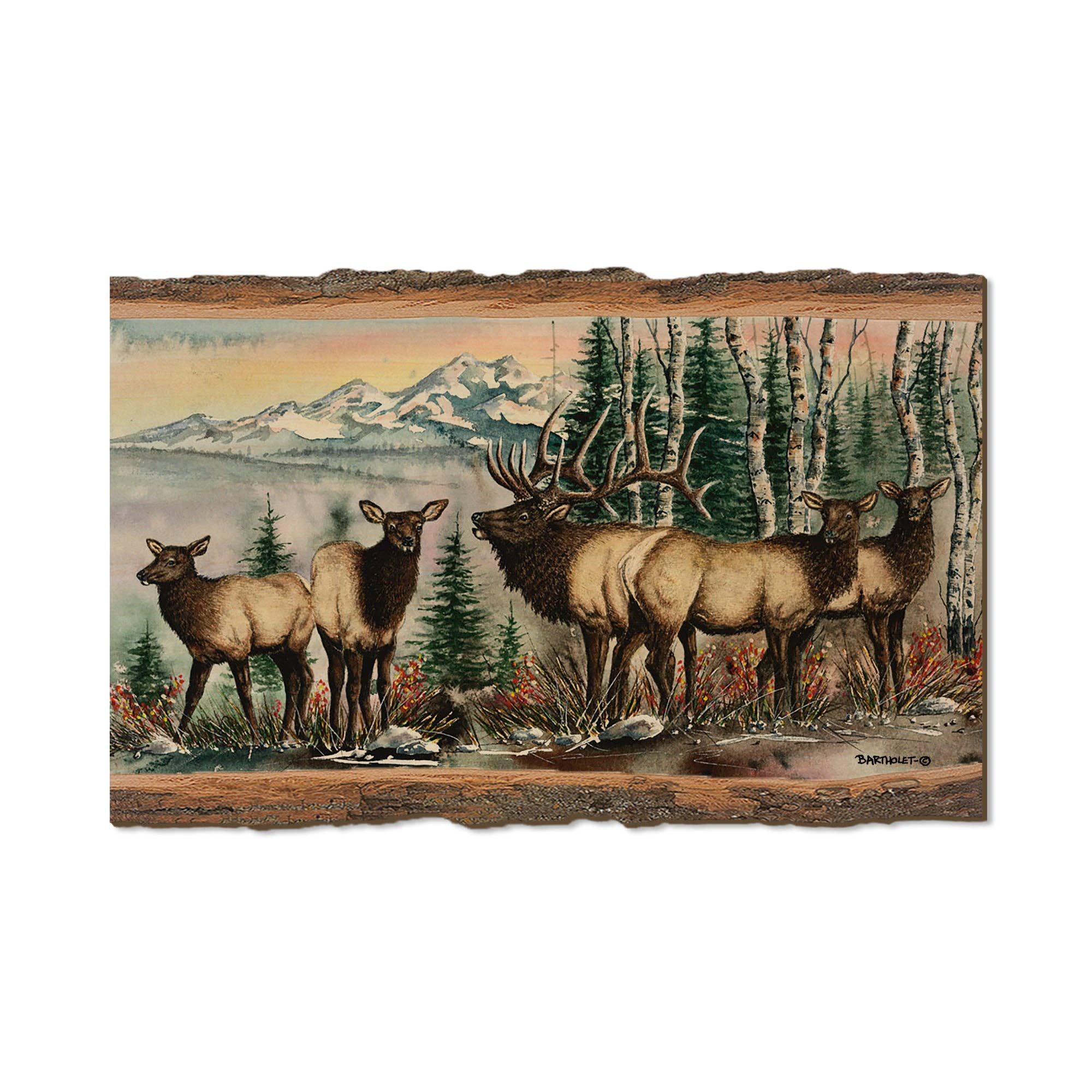 Features: • Created with real wood • USA designed, built, and shipped • Easy to sell! • Available as a postcard or magnet These postcards and magnets are made using a combination of colorful inks, wood, and laser cutting to create a believable and beautiful 'live edge'. The stunning artwork was originally done by the talented artist Dave Bartholet. Sizes: Postcard (5pk) - $2.80ea Measures: 3.86"x5.5"x.125" Meets 100% of USPS mailing requirements Just add 2 first-class stamps and write on the back with a ballpoint pen. Magnet (5pk) -$2.80ea Measures: 2.5"x3.5"x.125" Includes a strong magnet on the back Namedrop customization available!