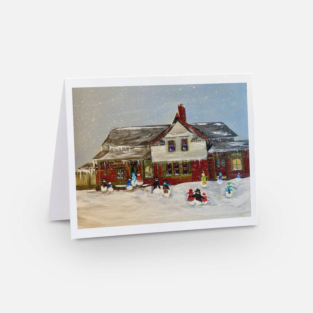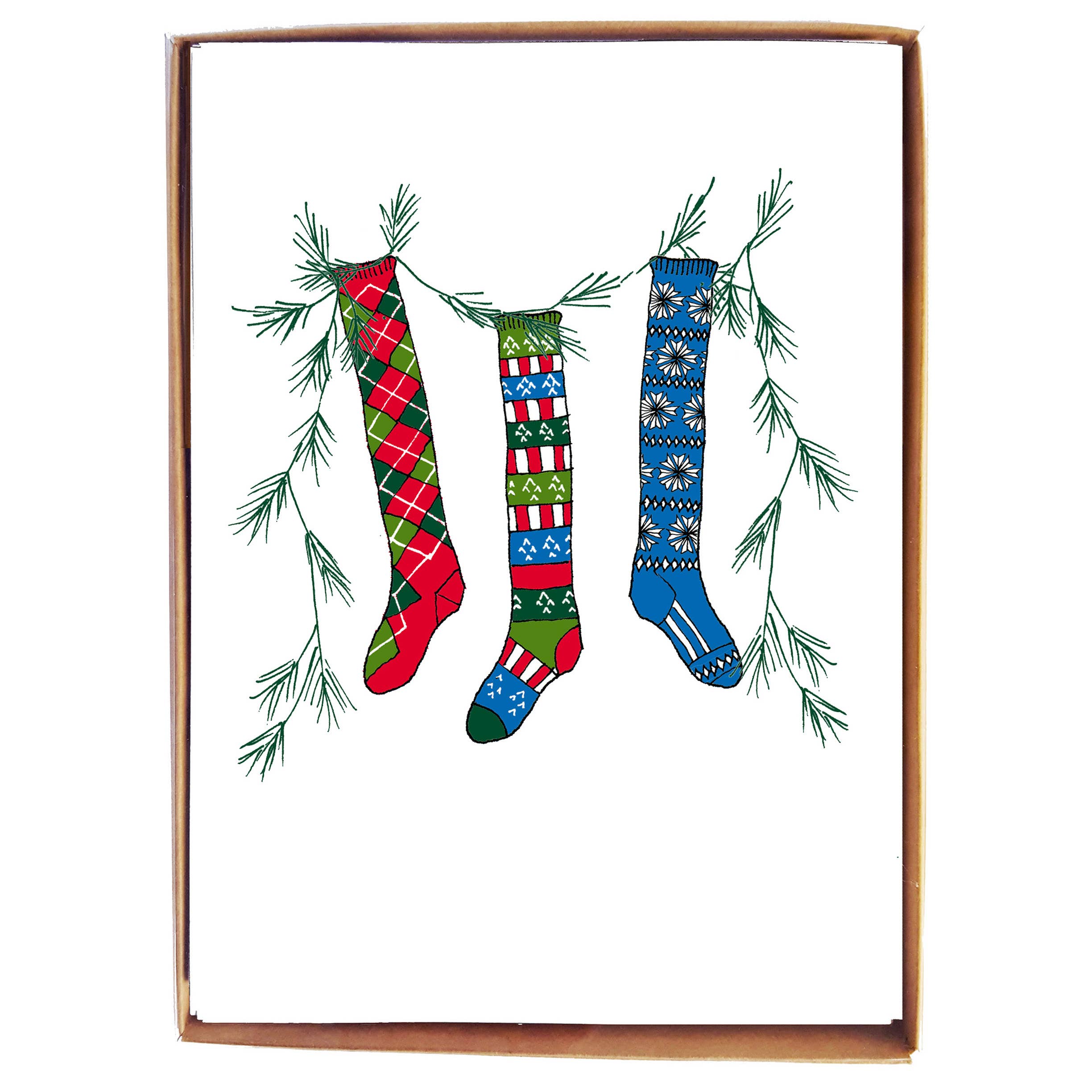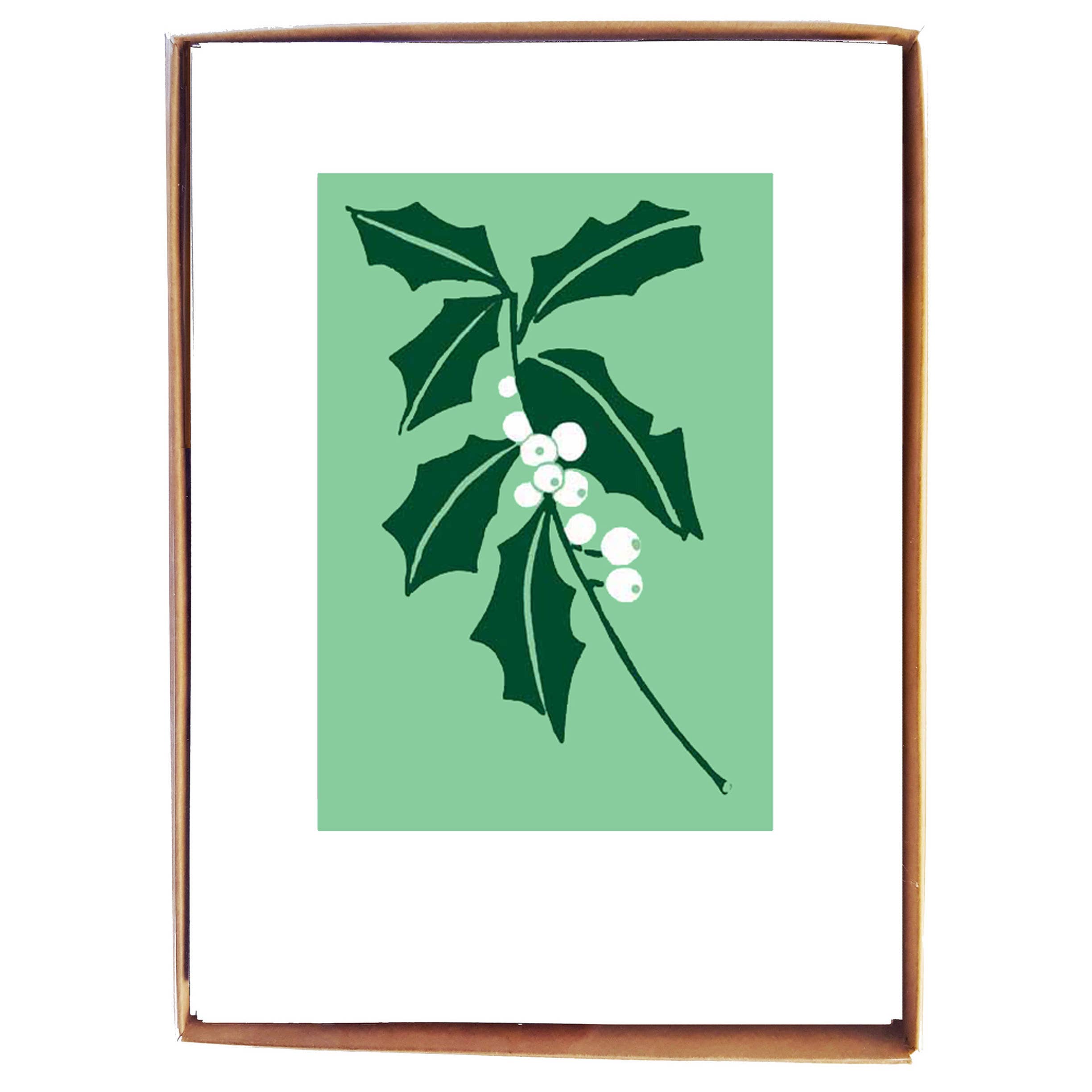 Happy Holidays Box of 8 small notecards Size: 4Bar card 35 x 5 Paper: 80lb linen stock Envelope: ivory envelope Printing: printed in Maine Paper certification: FSC certified