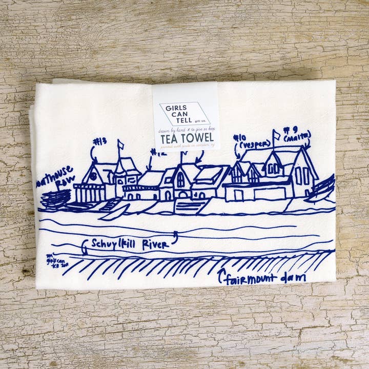 Some of the many beloved and historical landmarks of Philadelphia, each drawn, labeled + screen printed onto washable lint-free floursack cotton kitchen towels. These tea towels only get better as you wash them - perfect for drying dishes or just making your kitchen look awesome. They make a really great gift! Each 100% organic cotton tea towel measures approximately 26" x 26". Machine washable (not with bleach), tumble dry, do not iron.