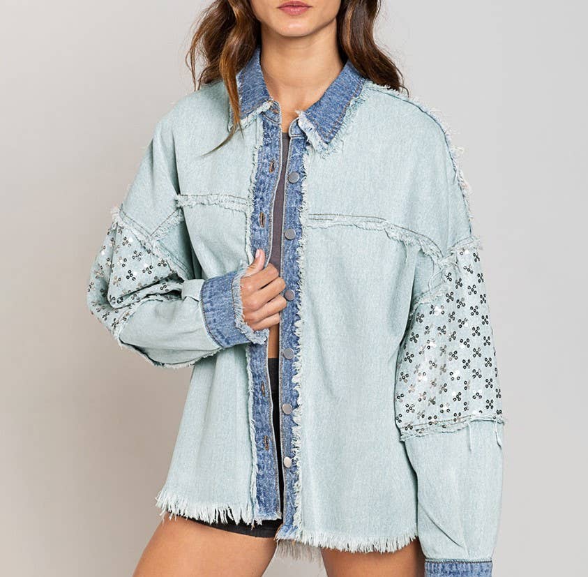 DISTRESSED DENIM JACKET WITH FRAYED HEM-RJK3617