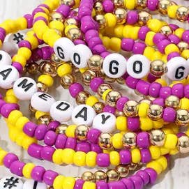 Size : 3.5" H Stretchable Theme : Game Day, Message, Sports Fun and sporty bracelet set featuring multiple stackable beaded strands with football-themed charms and star accents. A playful accessory perfect for game days, casual wear, or team spirit outfits. Lead and Nickel Compliant
