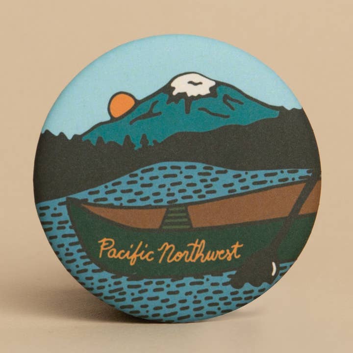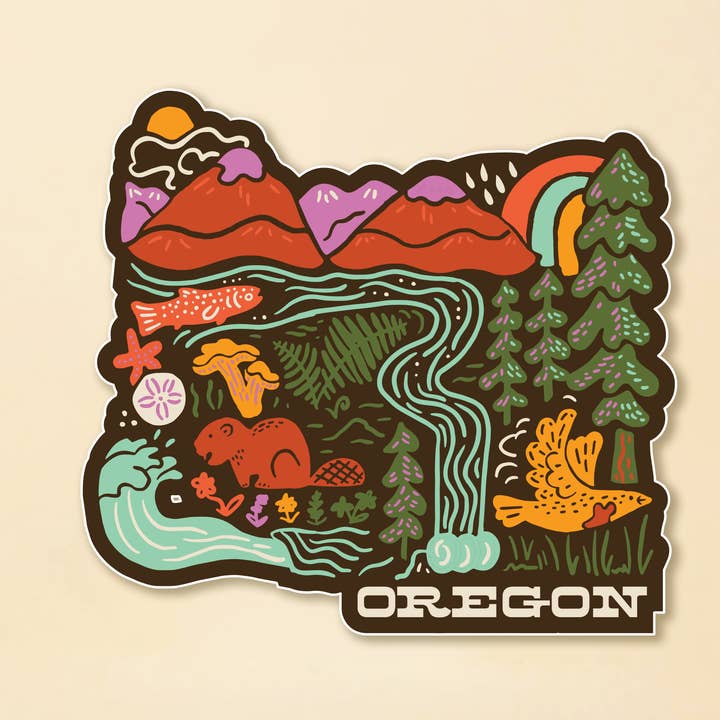 3.5" x 1.55" Die Cut Matte Finish Sticker Designed locally in Portland, Oregon. Made in USA. Oregon Washington California Mountain Mountains Hiking Camp Camper Camping PNW Pacific Northwest Forest Hike Outdoors Hydroflask Waterbottle Car Sticker Decal Waterproof Badge
