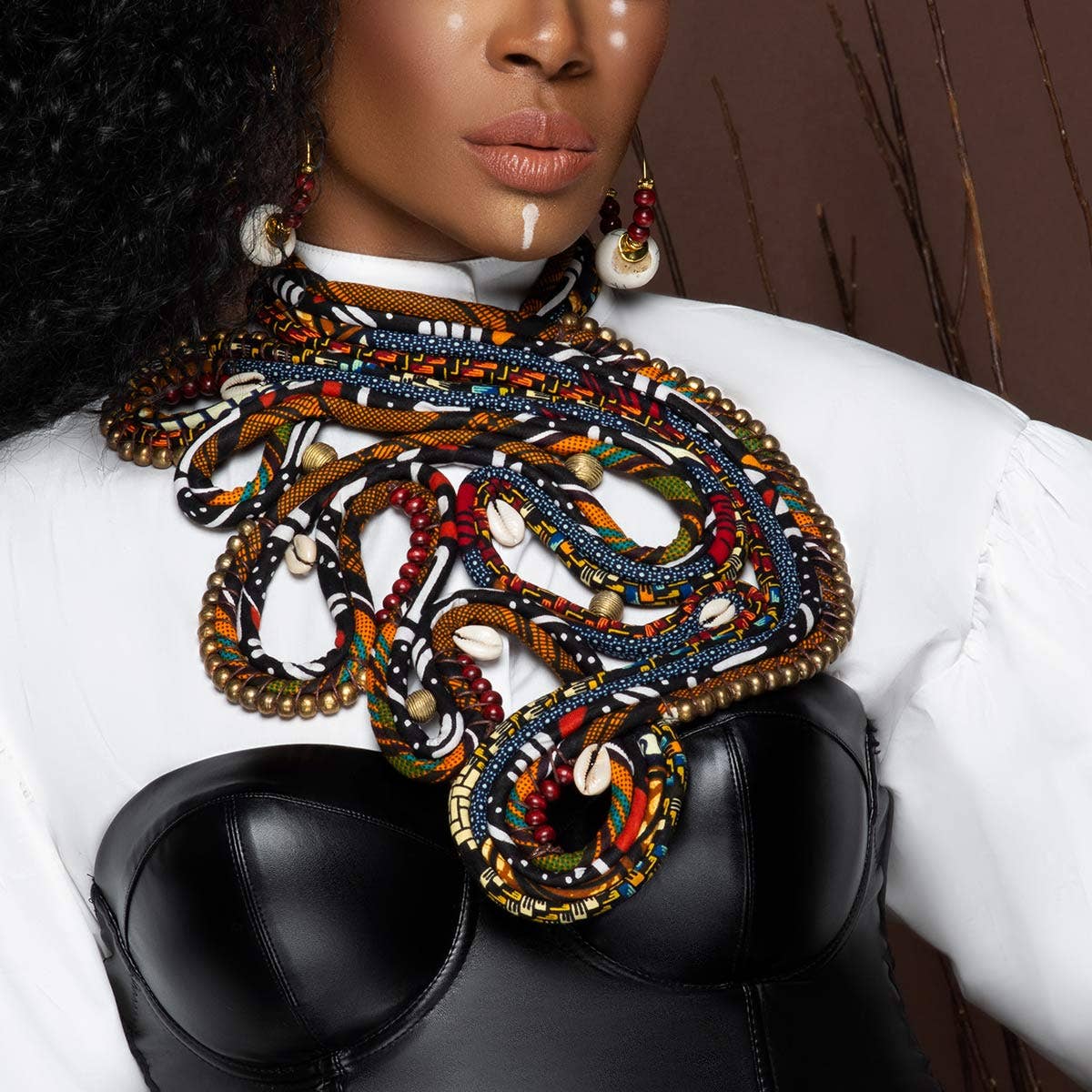 Wholesale Tan Men's African Statement Necklace | King | African Bib | Ghana Sun Baule | African Men's Necklace | Tribe
