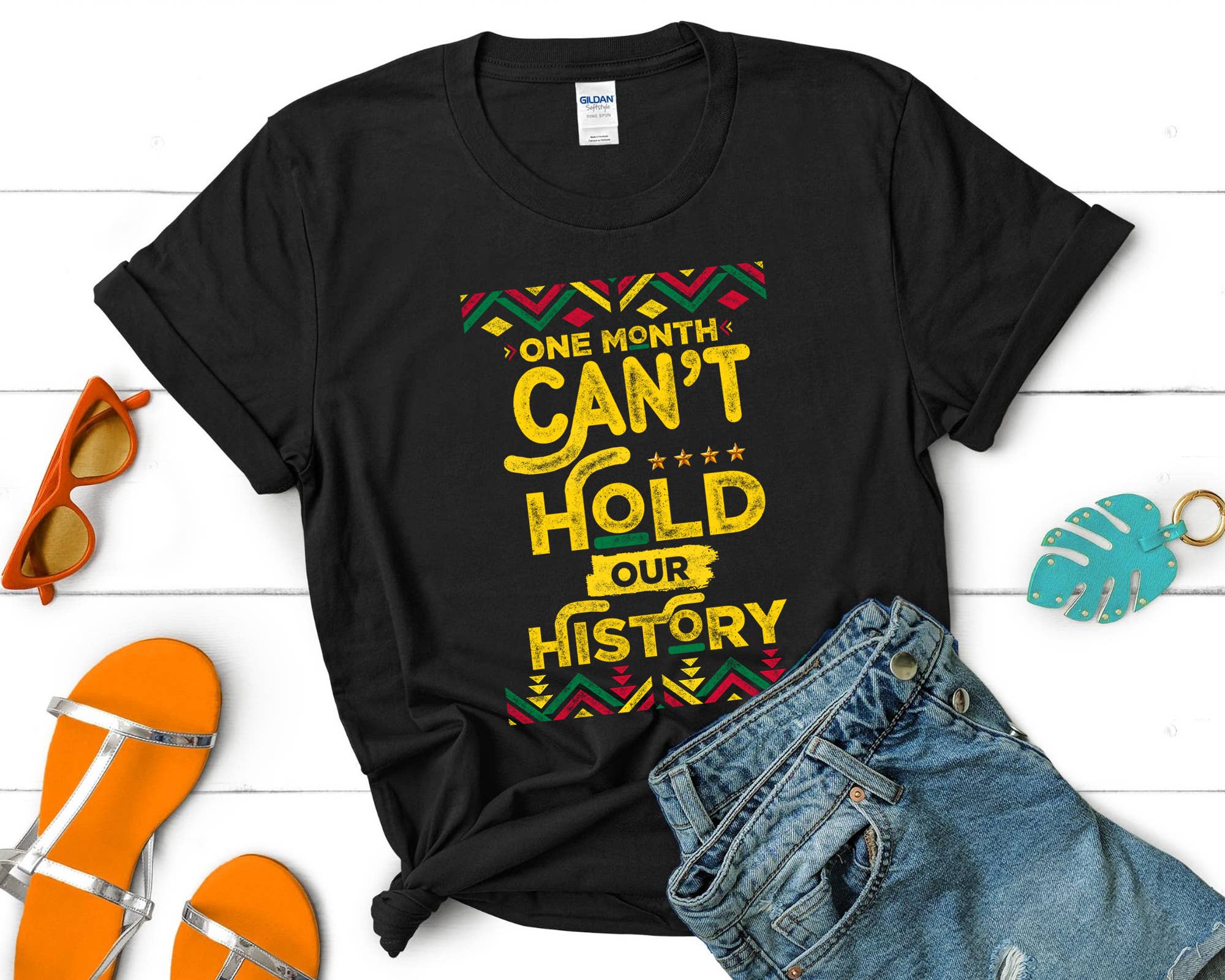 Black History One Month Can't Hold Our History shirt, BLM Juneteenth African American shirt, Black Girl Magic shirt, Black Man shirt Hello! Welcome To My Shop -- PRODUCT-- Heavy Cotton T-Shirt - Gildan - 5.3-ounce, 100% cotton 100% cotton (fabrication may be different for certain colors) - Double-needle neck; sleeves and hem - Roomy Unisex Fit - Taped neck and shoulders - Tear away label DO warm/cold machine wash DO NOT bleach/ dry clean/ iron directly onto the design -- How to Order Your T-shirt -- • Choose your size • Choose your design&text color • Choose your t-shirt color (You can choose the color you want in the color chart I attached and note it down below customize.) ✨ Please check all color and size charts before placing the order. Since all shirts are custom-made based on your selection, I don’t accept returns or exchanges unless there is an issue with your order. - Thank you for visiting. If you have any questions please feel free contact us.♥