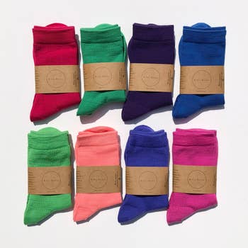 Bamboo socks have a cult following, and for great reasons: these socks are beyond comfortable. Naturally strong, soft, odor-resistant and antibacterial, they have fantastic stretch and recovery and take our dyes beautifully. Bamboo itself is a very renewable resource that grows fast without chemicals and pesticides. Will not fade or bleed-- machine wash & dry safely with no worries! We personally (the staff of WAXON) own a ton of these socks and they are our absolute favorite go-to pairs. SIZING: Bamboo socks have incredible stretch and recovery, which is why we sell them as a size range. The same size sock can fit a wide range of foot lengths & widths. Hand dyed in small batches, made to order. Don't see your favorite colors here? Message us for a custom colorway just for your shop! Great for artists, tie-dye fans, colorful kids, creative types, unique gifts, and everyone whose feet love to feel amazing.