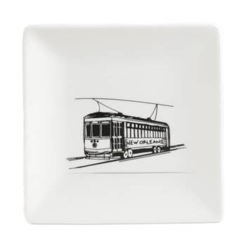 Part of our Greetings from Your City travel series, this catch-all dish features our D.C. Jefferson Memorial design. Multi-functional little art pieces make great gifts, and are a great size (and pricepoint). This design is perfect for tourists and locals alike. * Turquoise streaky glass, screen printed in black and white glass enamel, with a coordinating stripe glass * 4.5" square, about 3/4" high at corners * Dishwasher safe * Handmade This dish is screen printed glass, fused in a kiln in multiple firings. Catch-alls are great for tossing your coins and keys into, hold rings and earrings, candles, soap, make cute appetizer plates, great spoon rests and decorative accents. Each piece is made by artist Laurie Freivogel in her Oak Park studio.