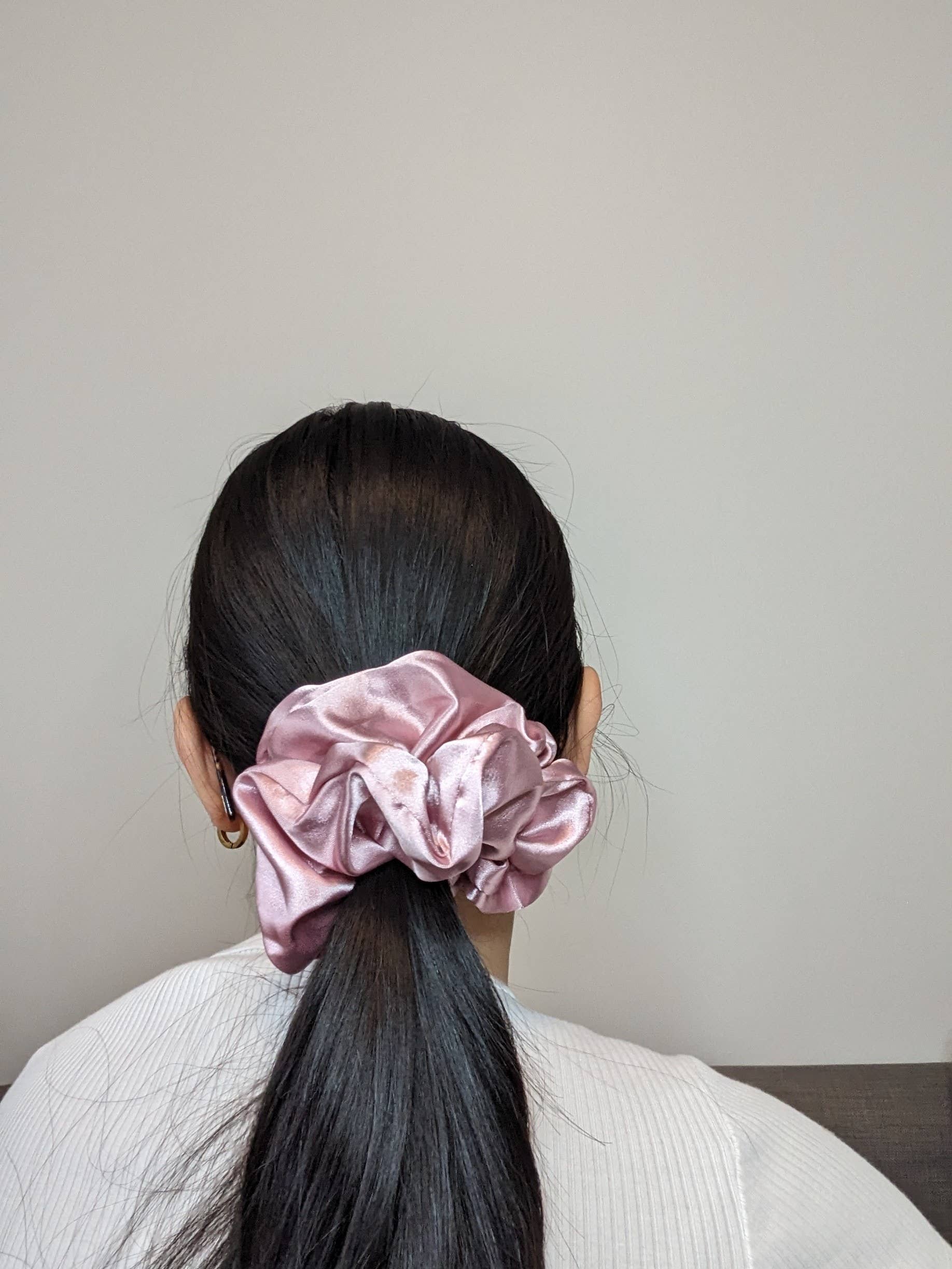 Jumbo-sized and made from an exquisite silk satin. This fabric is incredibly gentle on any hair type while still holding your hair securely. Did we mention it feels amazing to the touch and looks stunning to boot? Complete your look with this beautiful scrunchie. Size: 6" in diameter (approximately) Scrunchie Care: We recommend you hand wash cold and hang to dry. Due to minor differences in the way screens produce images, the colours viewed may not be exactly as seen.