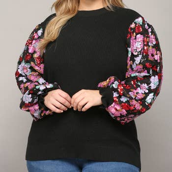Wholesale Plus Sweater Top With Star Pattern Sleeves