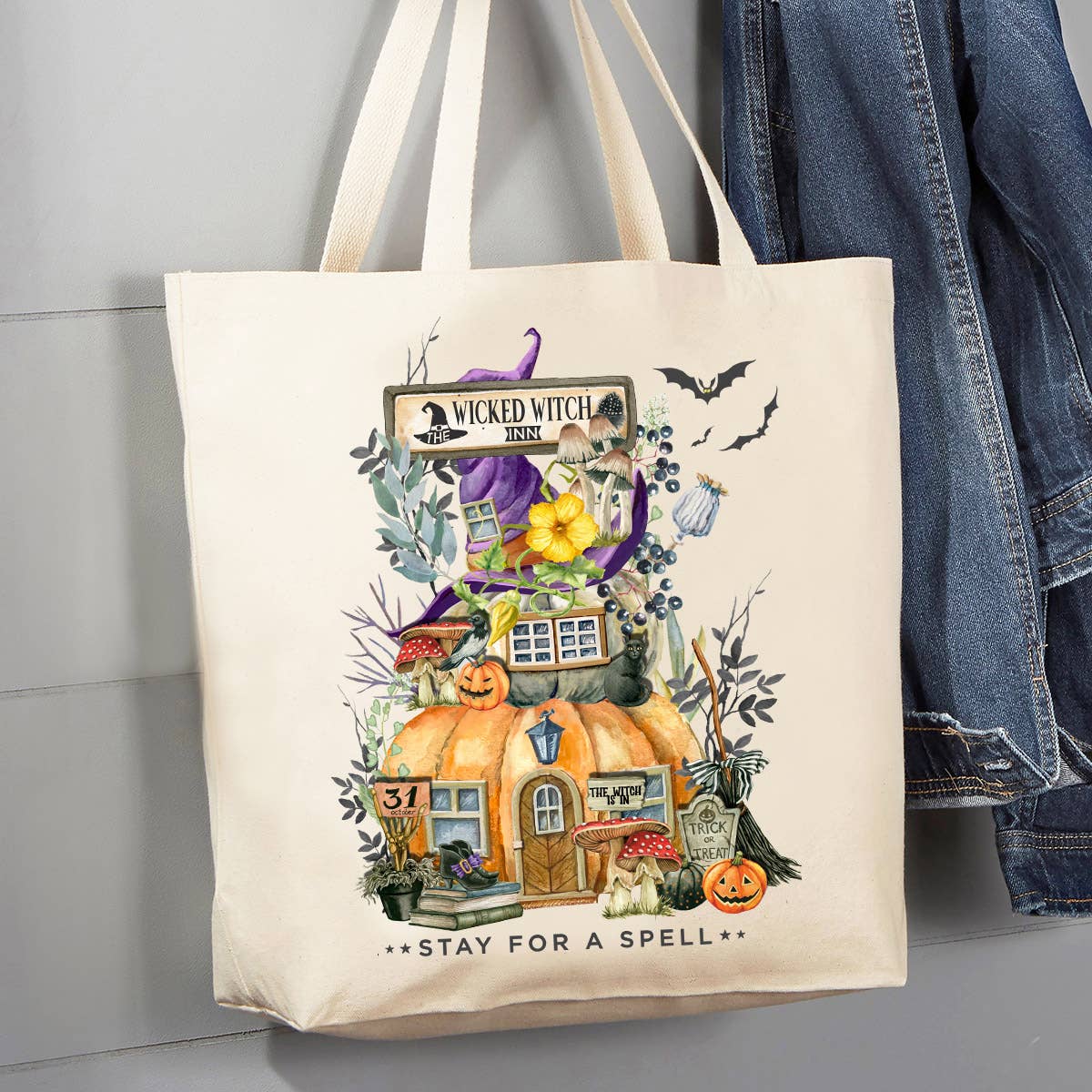 Spooky Season Horror VHS Halloween Tote Bag 13 x 14 in. natural/off-white color canvas tote bag. A high quality printed image on one side of the tote. Two shoulder straps with a 9 in. drop make for a comfortable fit. We recommend spot cleaning this item to ensure a long lasting image. Color may vary on actual product due to differences in screen resolution. Hand printed with care in North Carolina.