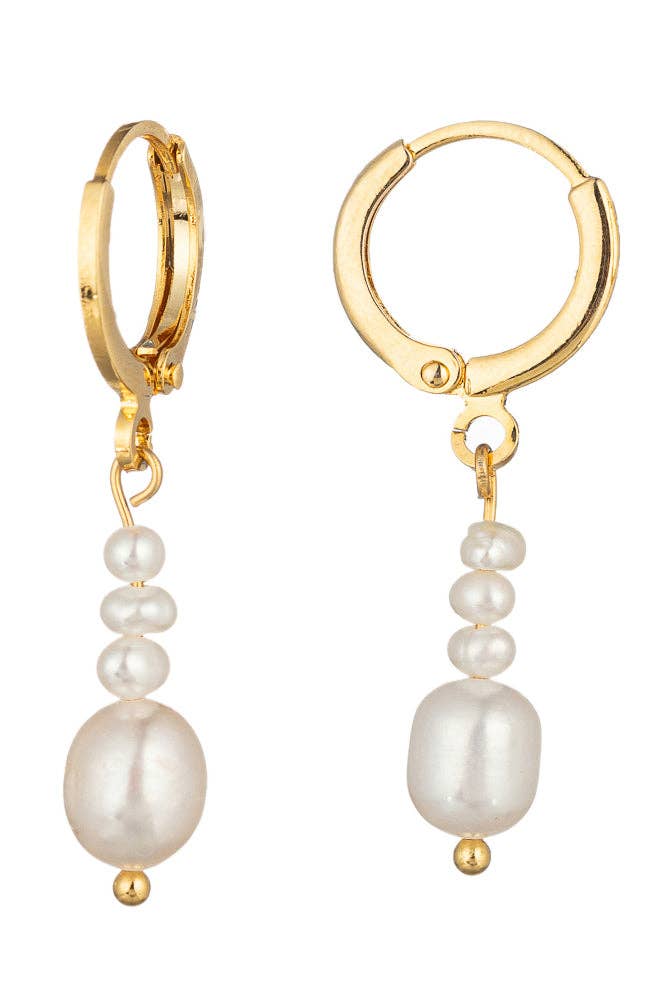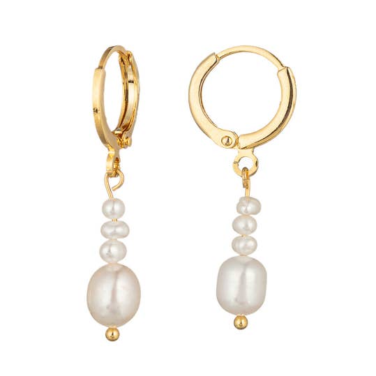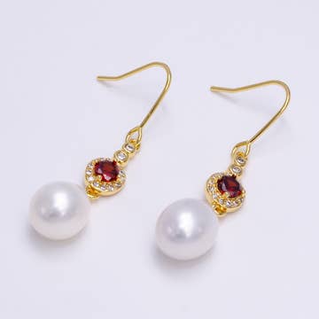 Baroque pearl with Austrian crystal teardrop dangle. Plated in sterling silver. Made in America. L: 1 1/4".