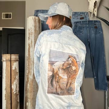 -Werstern Print Long Sleeve Relaxed Fit Button Down Woven Shirt
