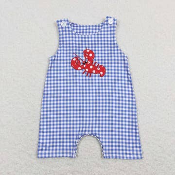 Baby Infant Boys Crawfish Blue Checkered Rompers