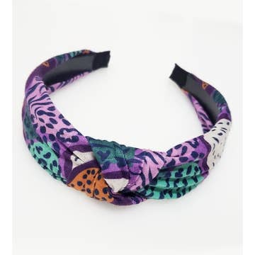 This headband is braided on the top and it ties to make it adjustable to fit every head shape. Headband is made from a recycled silk sari from India. Will not match picture exactly but will be in same color palette. Our handcrafted goods are made by women and girls who have survived or evaded human trafficking in northern India.