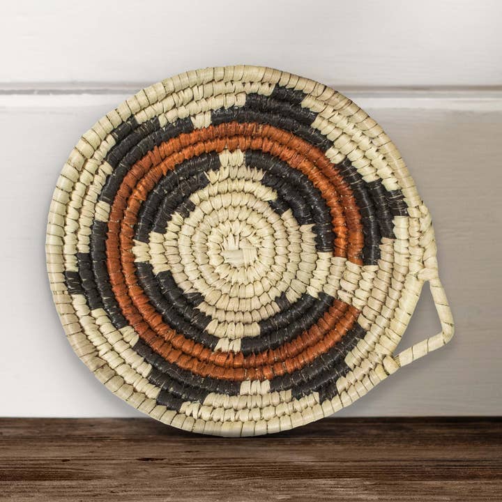 Elevate your product range with this beautifully handwoven bowl basket, perfect for boutiques, home decor stores & lifestyle retailers seeking handmade pieces with purpose. Each basket celebrates Southwestern craftsmanship, eco-friendly materials, and traditional Navajo-inspired designs. Size: 8" Inch Diameter / 2"-3" Inch Height (Approx.) Materials: Palm Leaves, River Grass, Natural Vegetable Dyes Uses: Perfect as a wall decor accent, a catch-all bowl for keys and jewelry, or a display basket for bread, fruits, and baked goods. This versatile bowl also works beautifully on shelves, dining tables, or entryways, adding a warm bohemian and Southwestern touch to any space. This timeless piece works wonders as a decorative bowl, a boho storage basket, or a Southwestern home accent. Its intricate weaving and cultural patterns bring heritage and character into both modern and rustic interiors. Large quantities of the same design are available, making it easy to stock consistently for your store. Handcrafted quality born from over two decades of dedication to basket weaving. Eco-conscious appeal, combining sustainable materials with timeless Southwestern style your clients will feel good about. Stock your shelves with a piece that’s more than decor, it’s a story, a sustainable staple, and a handcrafted jewel all in one. Explore more unique and Southwestern-inspired baskets available in our collection. Handcrafted by skilled artisans, each basket carries a unique pattern, making it a one-of-a-kind addition to your home. Its bohemian-inspired design seamlessly fits into modern, rustic, and farmhouse interiors, bringing warmth and natural beauty to any setting. More than just decor, this piece tells a story of tradition, sustainability, and artistry. Size: 8" diameter, 2.5" height * Use it as a fruit bowl, bread basket, or a wall-hanging statement piece. * Handwoven from natural palm leaves, sea grass, and plant-based dyes—eco-friendly, durable, and timeless. * Rustic & Bohemian charm perfect for farmhouse, boho, or Bohemian-inspired spaces. * A thoughtful present for housewarmings, weddings, or boho decor lovers. * Your purchase empowers women artisans and preserves traditional weaving techniques. Care Instructions: Dust gently with a soft cloth or wipe with a dry cloth. Keep away from excessive moisture to maintain its durability. At Artisanal Emporium, we believe in creating sustainable, handcrafted home decor while uplifting artisan communities. 10% of profits goes towards supporting women artisans, their families, and child education. Add a touch of handmade artistry to your home today! Order now!