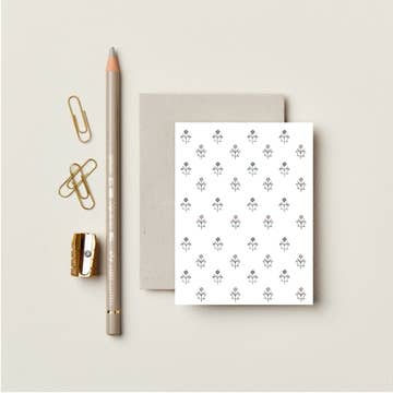 Black dotted pattern. Card Size - A2 - 4.25x5.5". All greeting cards are packaged inside of a sealed flap clear cello sleeve. All greeting cards are blank inside. 10% of all Instead of Ashes profits are given to a ministry that fights human trafficking.