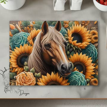 A little fun for the kitchen! A generously sized 12x15 inch tempered glass board with a humorous repeating message as the background, "the chef is not responsible for dog hair in the food!" (we use "cat hair" for cats and "galloping gourmet" for horses) We print on the back of our boards so they'll look new for years as long as you keep them away from the dishwasher. They make awesome hostess gifts and wedding gifts. Plus they can do double duty as Charcuterie boards! Made to order in the USA.
