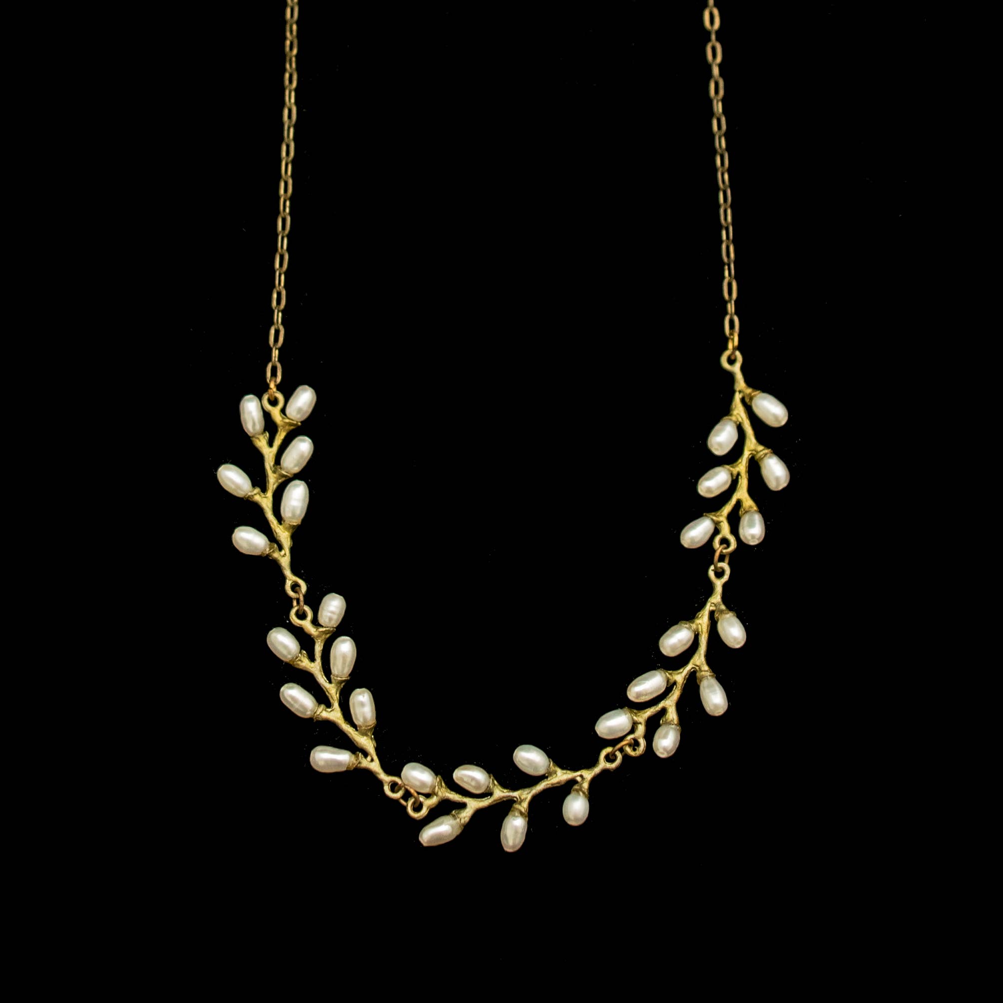 Cast bronze with a hand patina finish. Accented in freshwater pearls.